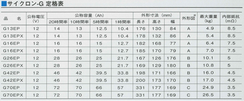 小型シール式鉛蓄電池 サイクロン-Gシリーズ