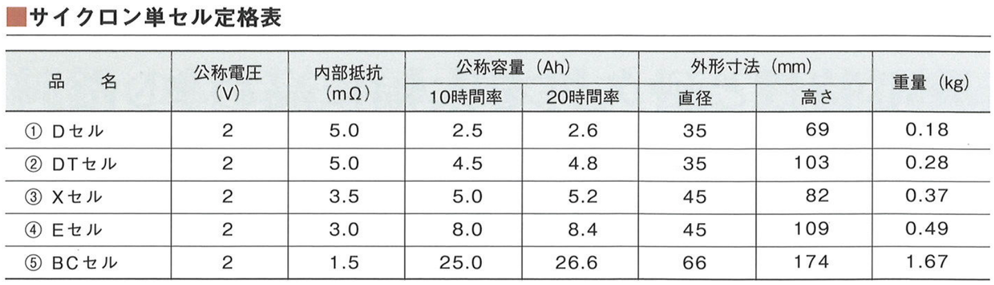 シール式鉛蓄電池 サイクロンシリーズ