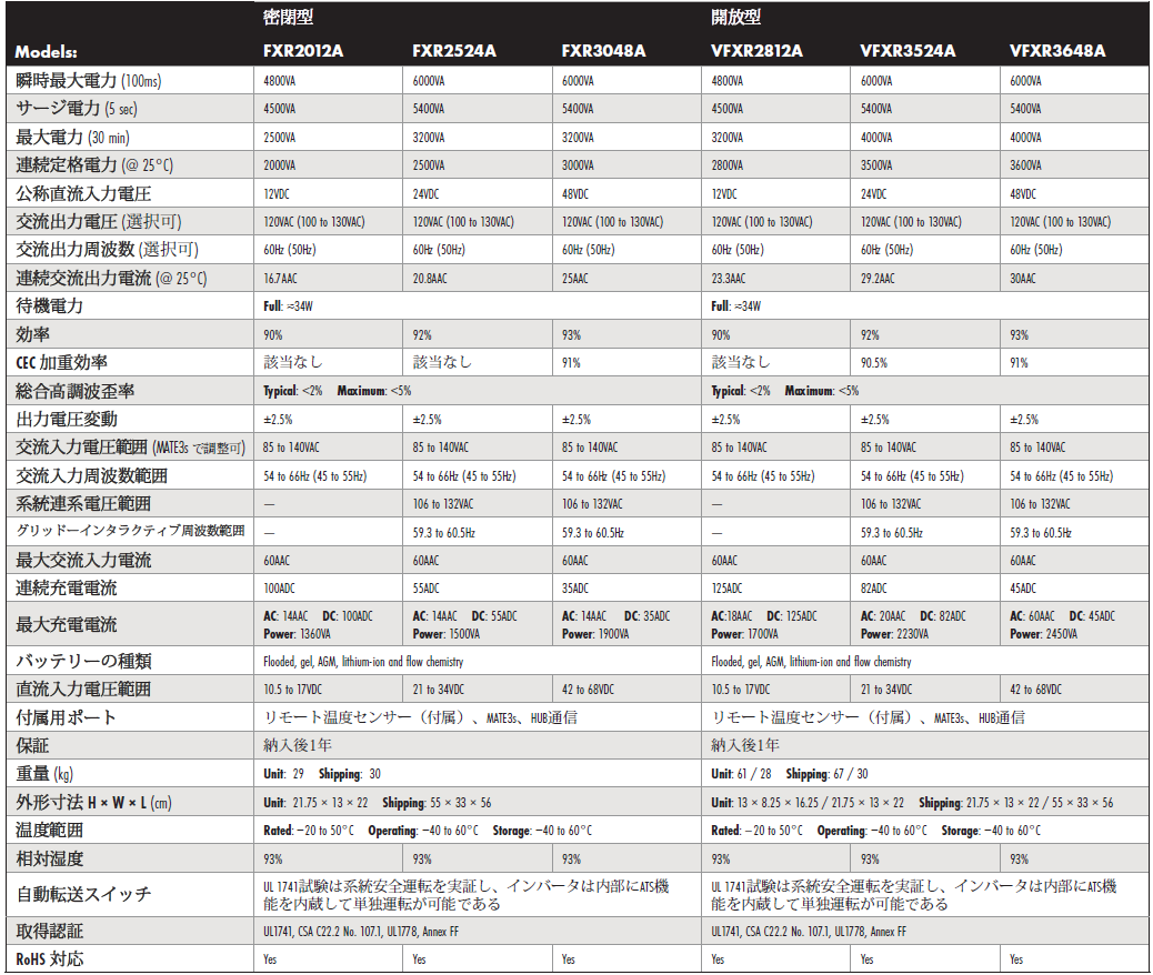 OutBack の製品ラインには、オフグリッド インバーター、ハイブリッドおよびグリッドタイ インバーター、MPPT 充電コントローラー、通信